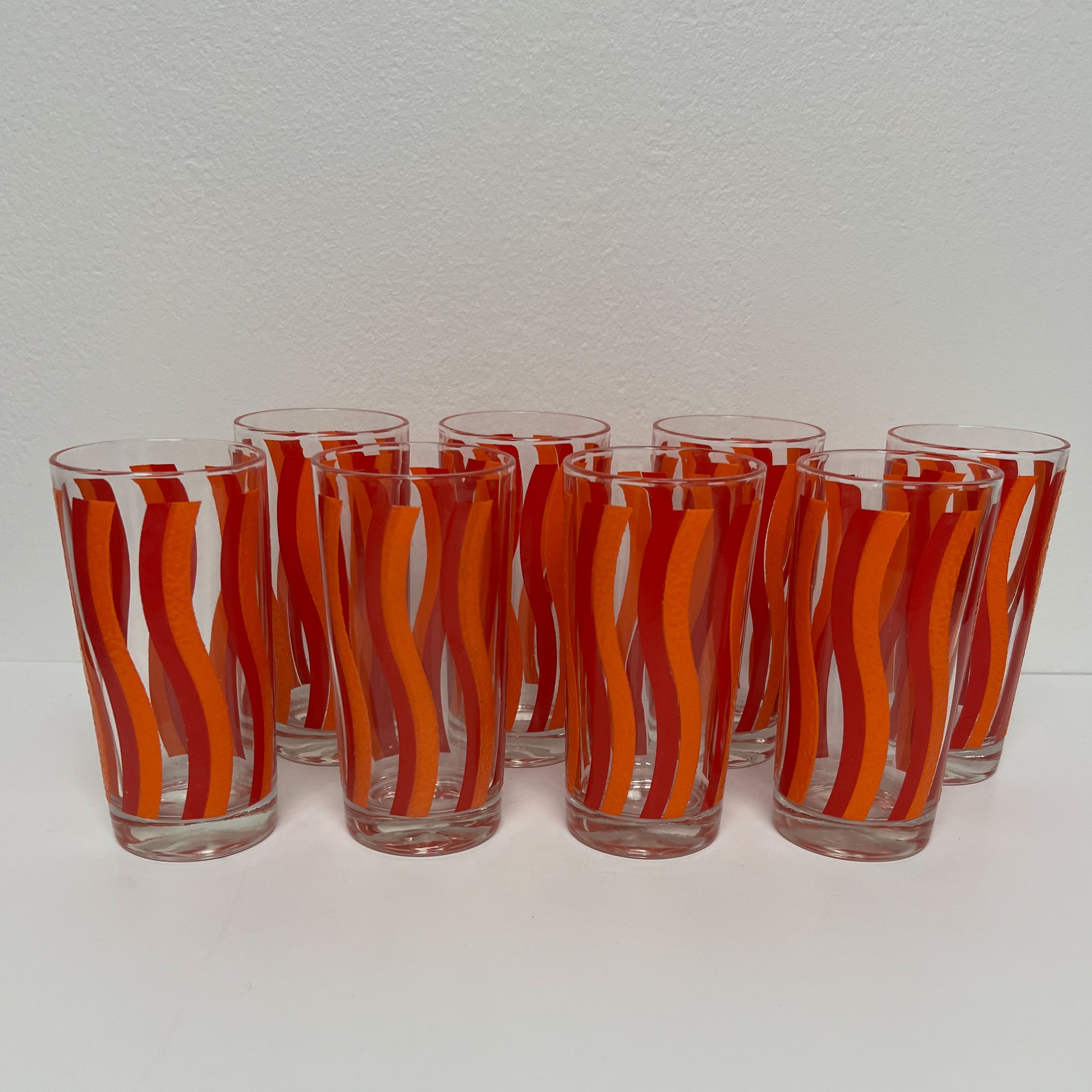 (23507) Set of Eight Midcentury Red and Orange Striped Tumblers