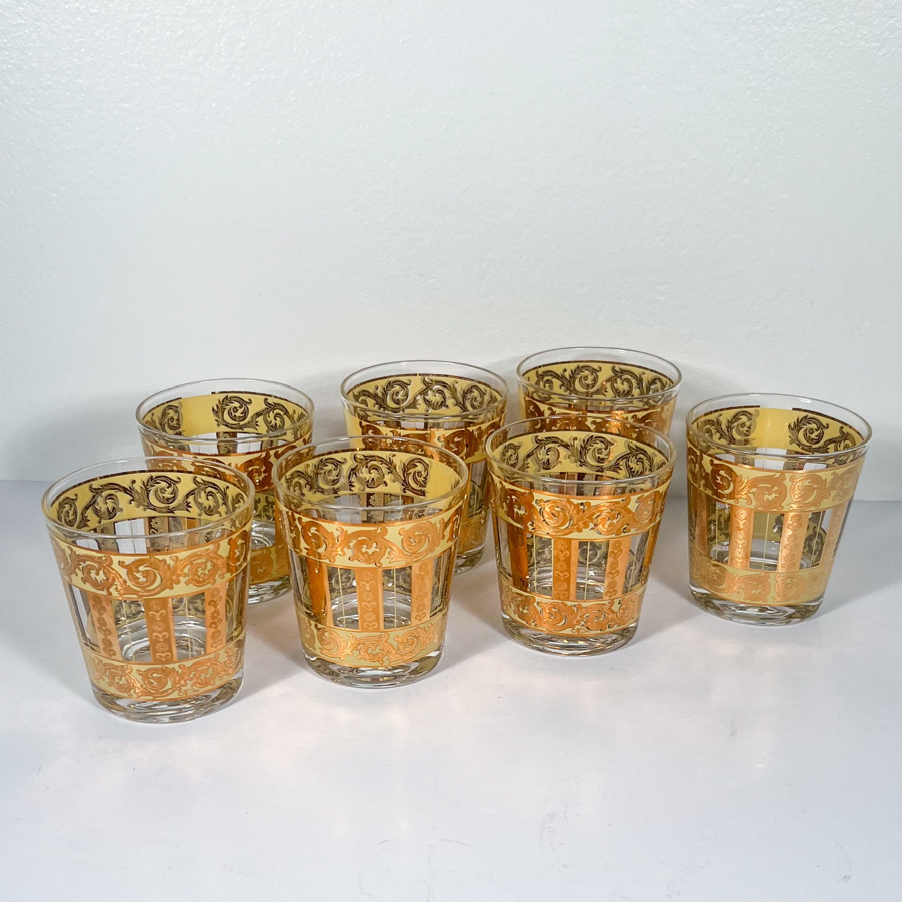 (24734) Set of Seven Gold Scroll Midcentury Sipping Glasses