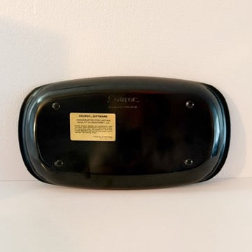 An unusual oblong Couroc Tray featuring two cats. The tray is approximately 6.75" wide and 12.5" in length. Hand washing in mild soap is recommended to preserve its beauty. All our Courocs are used, dating from the 1940's to 1980's, and may have minor scuffs and scratches, but they do not have chips or cracks.