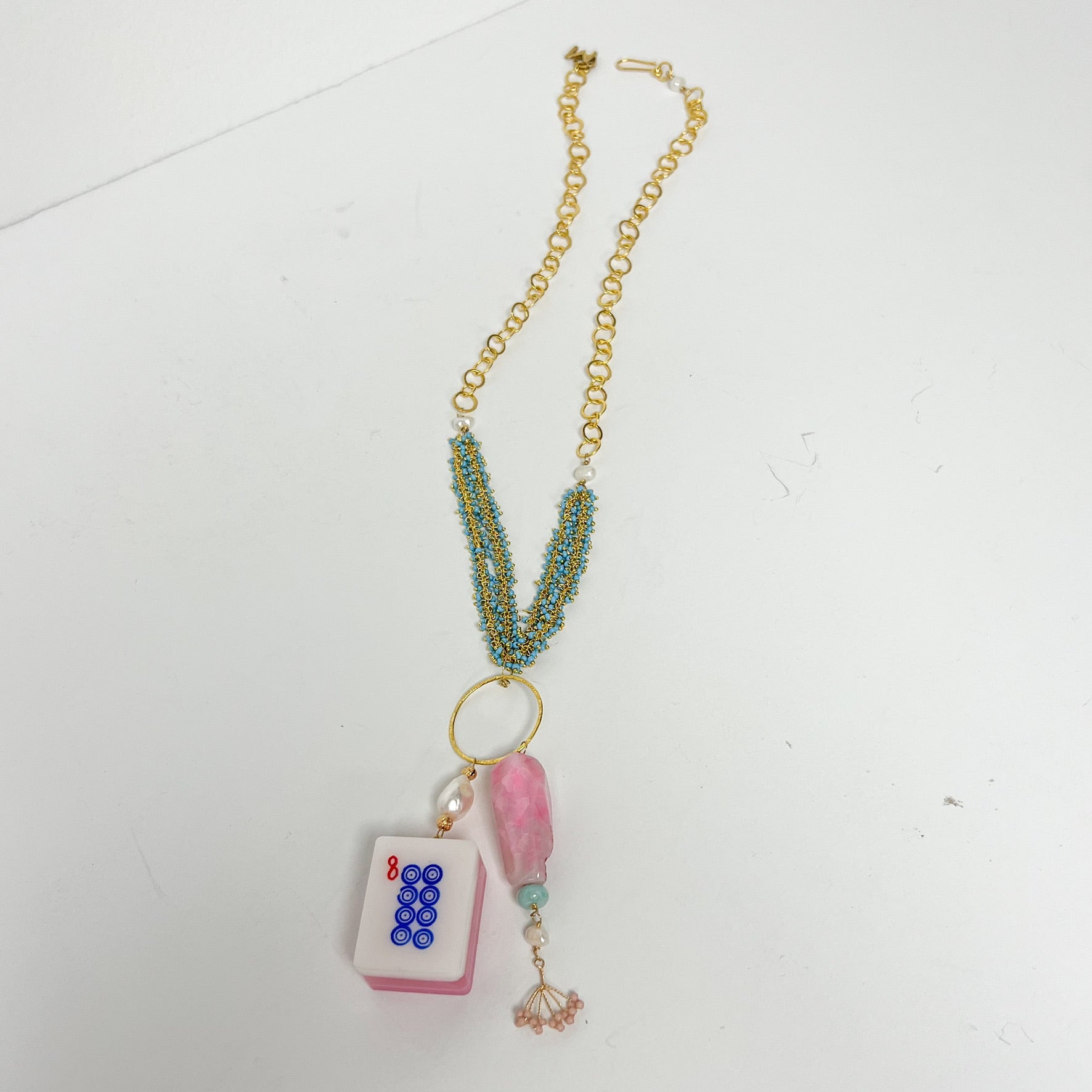 (26177) Mahjong Necklace (Turquoise Beads) Handmade by Meg Carter Designs