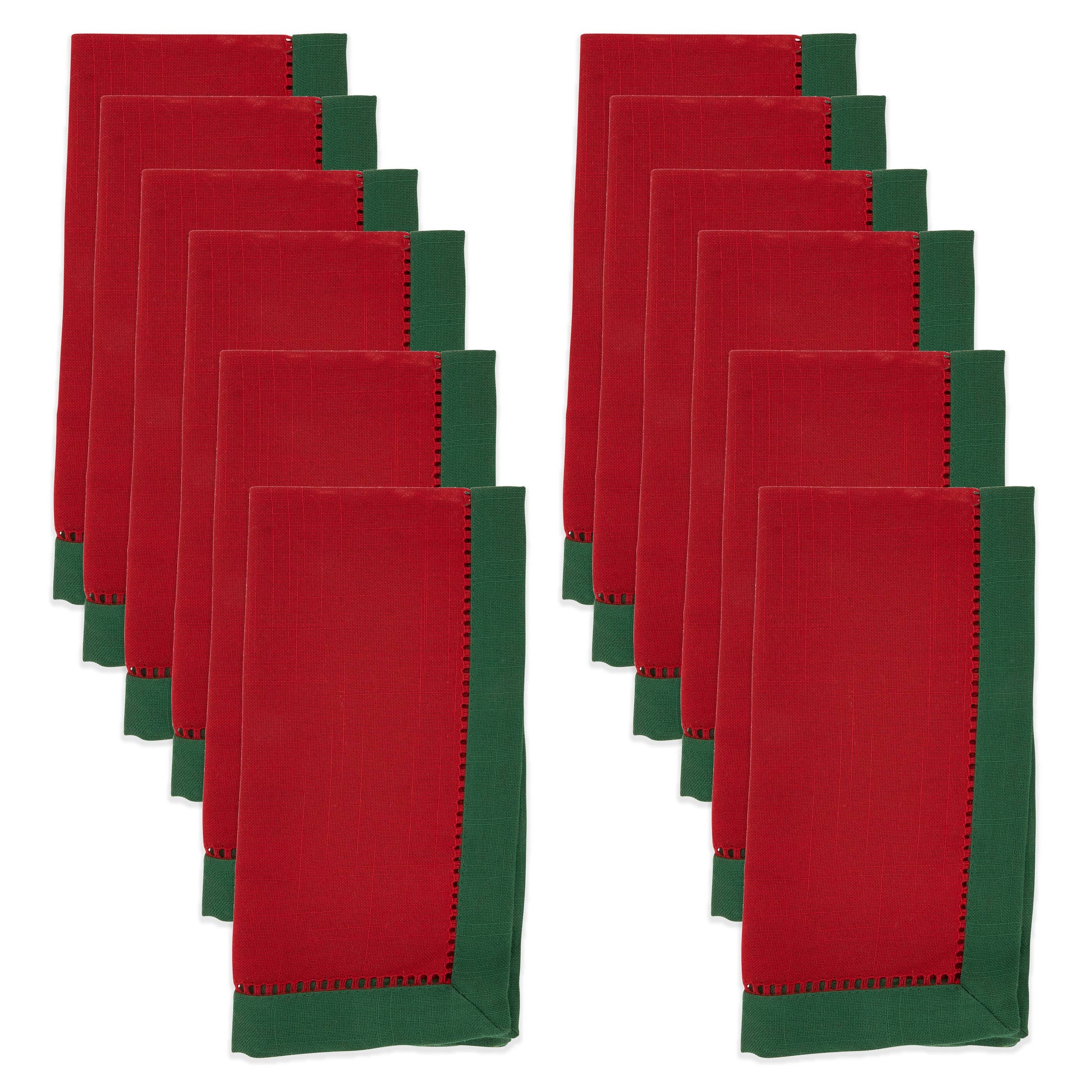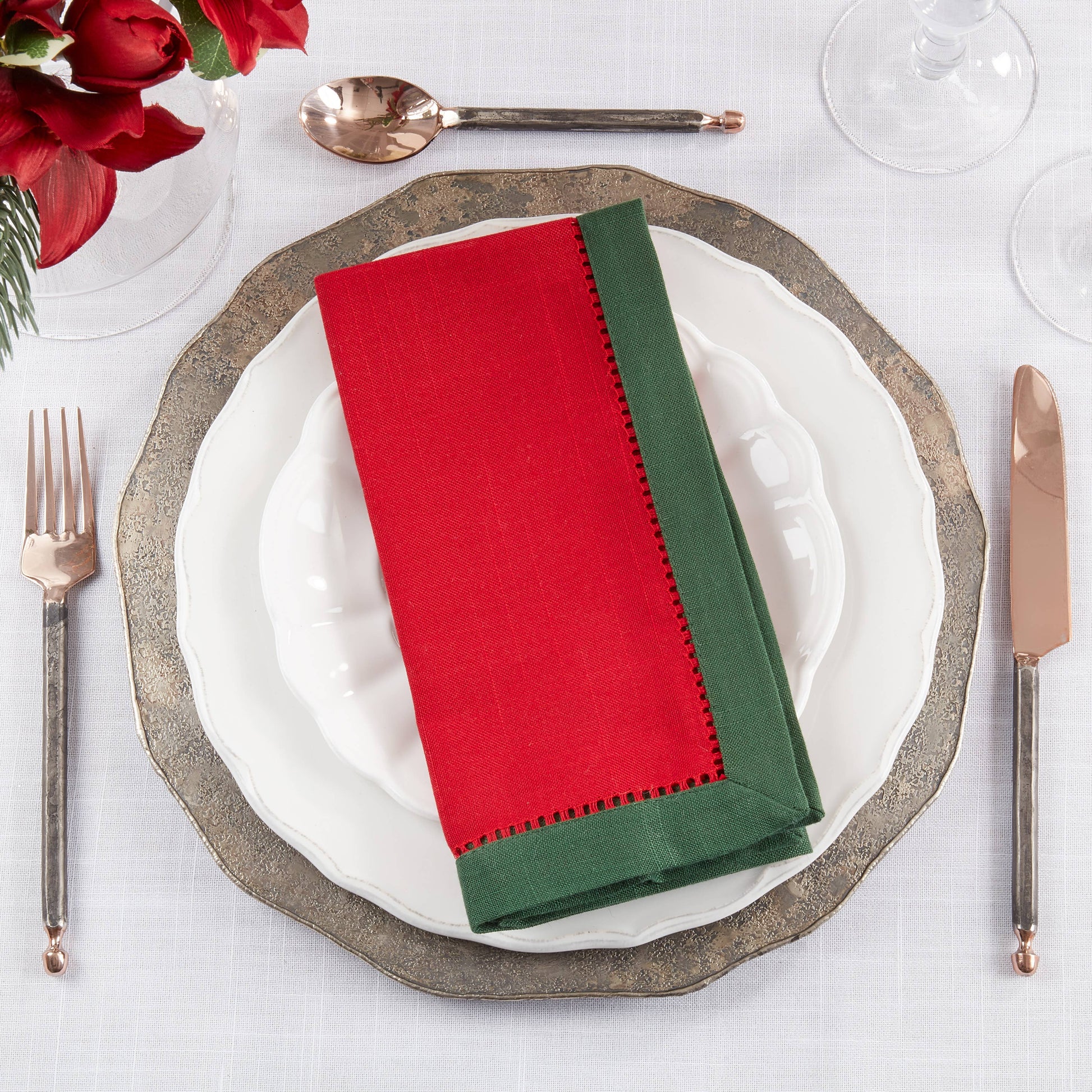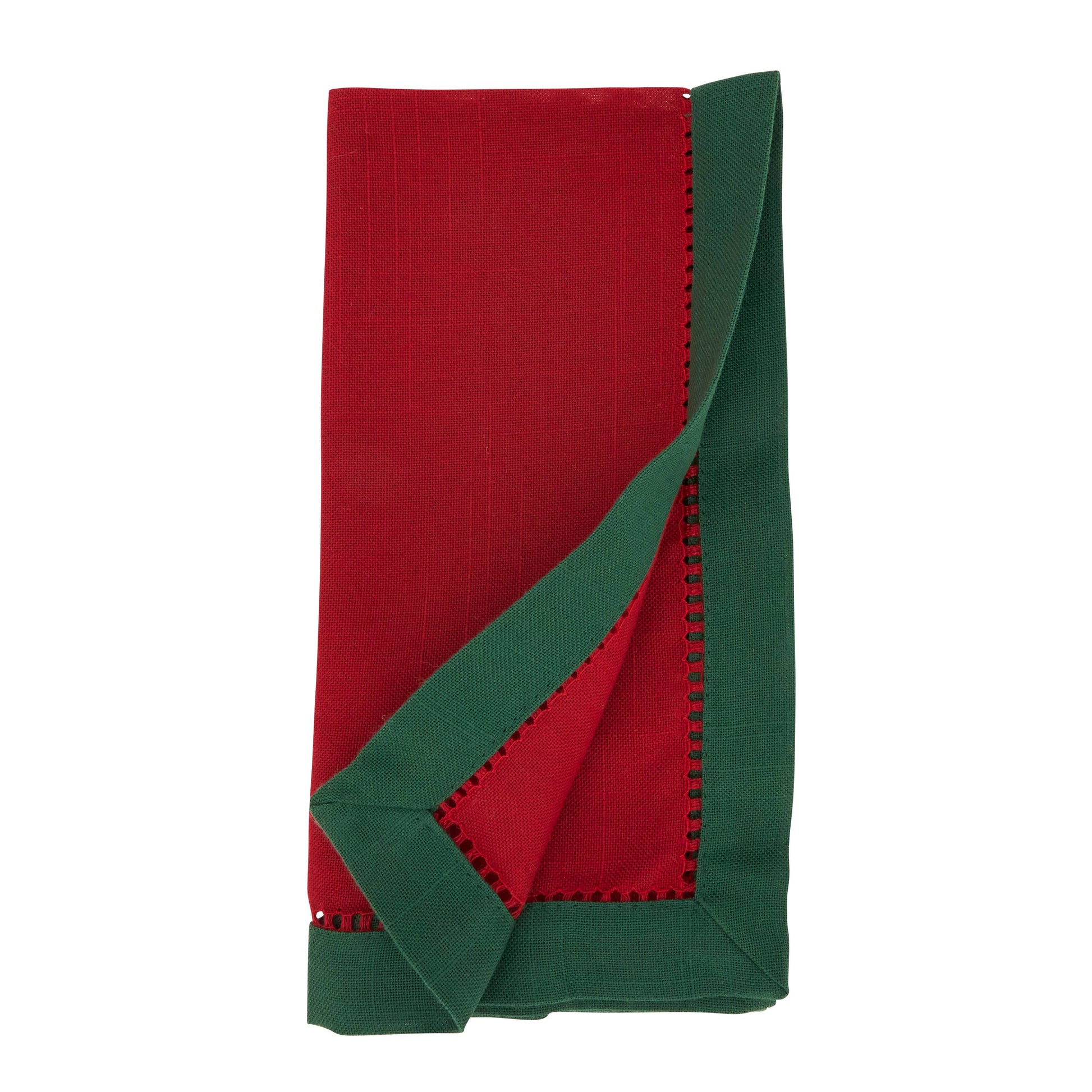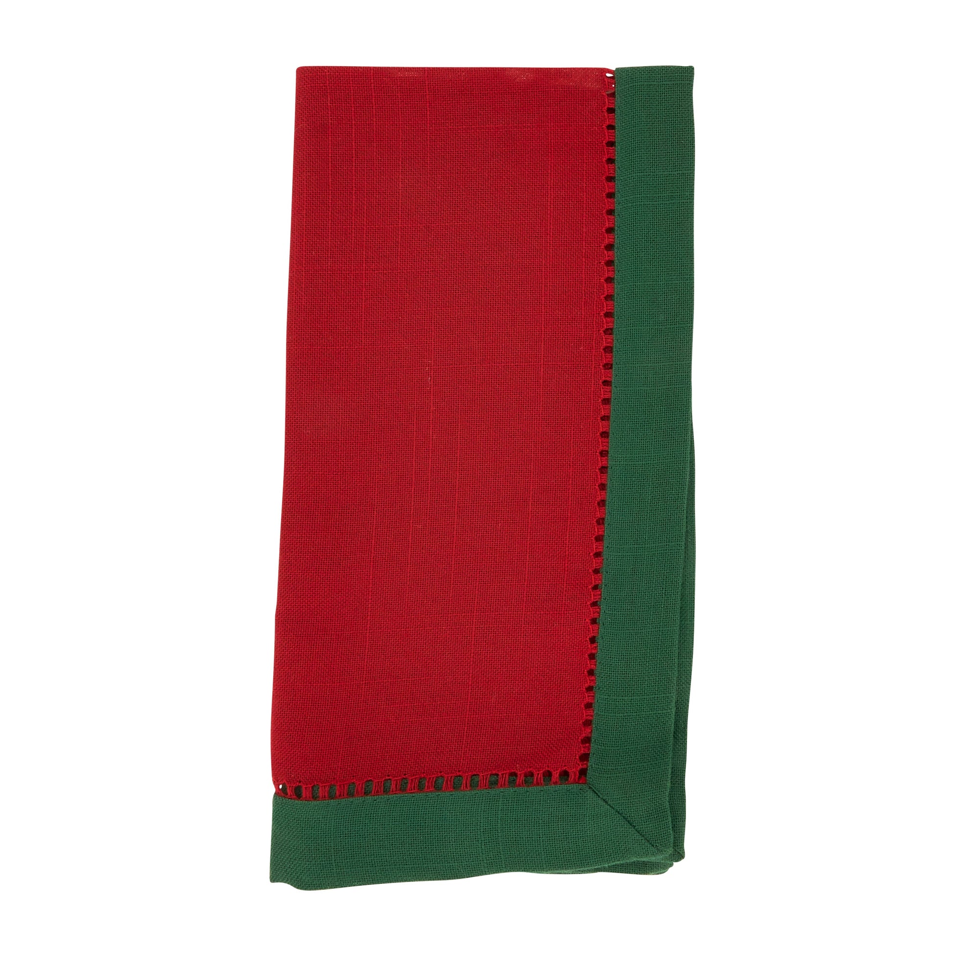 (25449) Two-Tone Hemstitch Napkin Red & Green